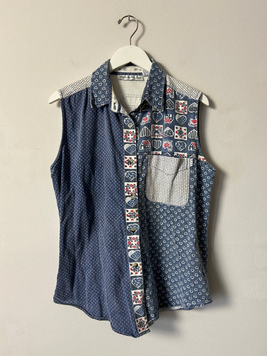 Vintage Paris Sport Club Patchwork Cottage Print Top - Large